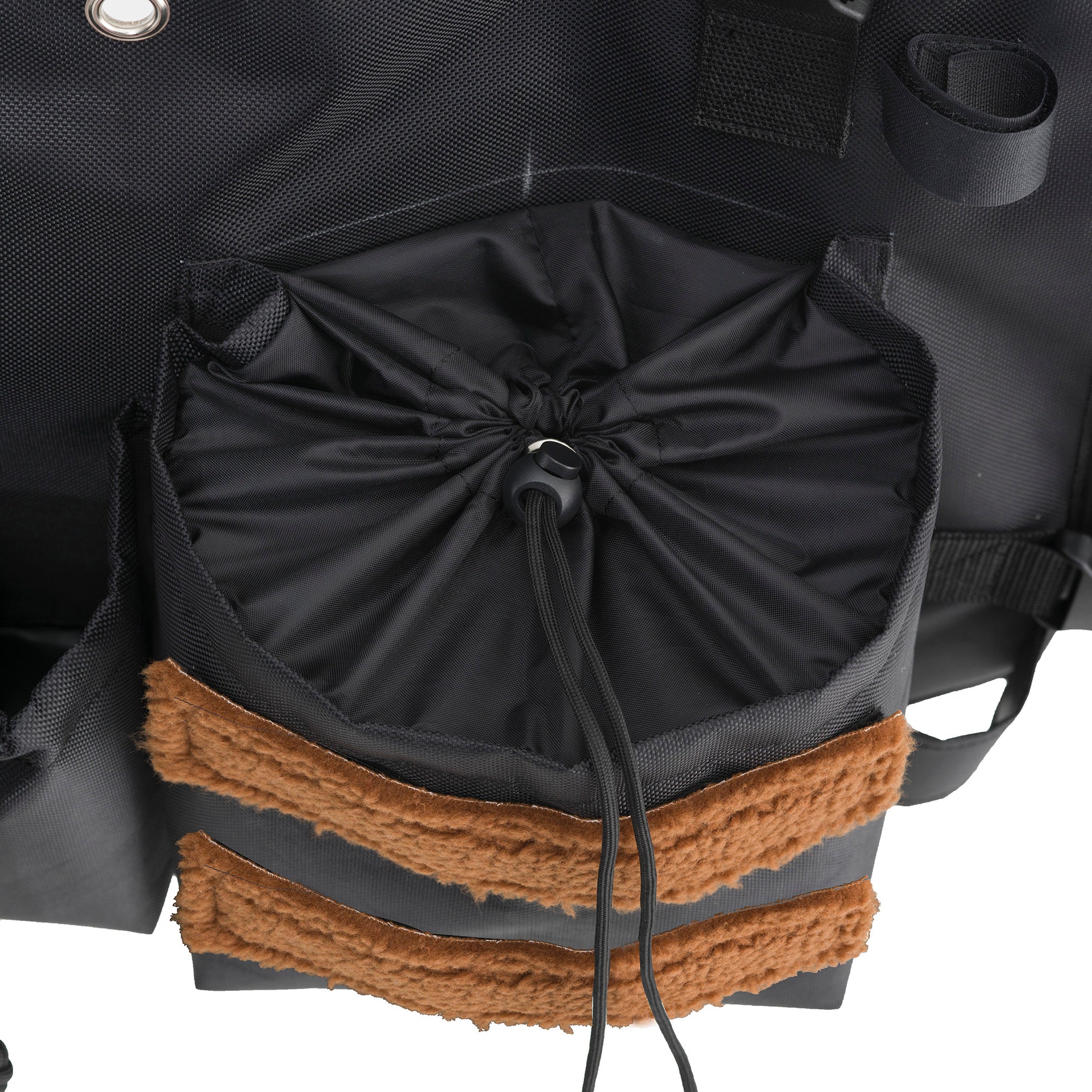 - AQUOS side storage bag, Material of 1680D coated waterproof Oxford fabric; Brings more convenience to Lurers with quick release buckle; Reflective stripes on the back, increasing the safety at night.Storage bag can easily hold clothes, electronic equipment, etc. with waterproof zipper design.
